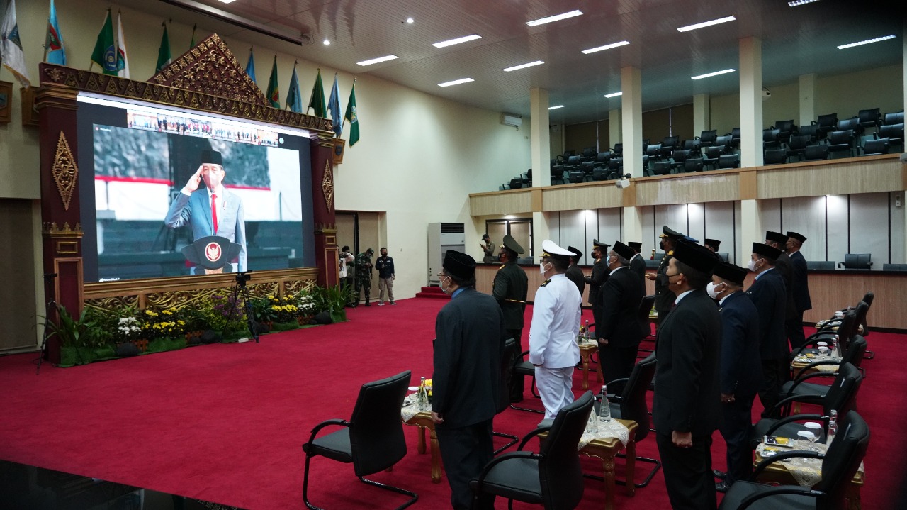 Segenap pemangku kepentingan mulai Institusi TNI, Polri dan Pemerintah Daerah hingga Lembaga Pendidikan ikut serta dalam upacara peringatan Hari Kesaktian Pancasila Tahun 2021 ini, meski dilakukan secara virtual.