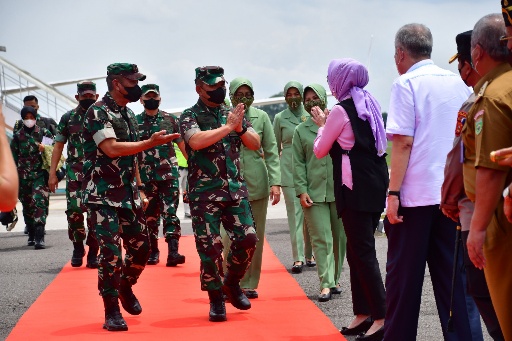 Tiba di Bandara Sultan Mahmud Badaruddin II Palembang, Kasad Jenderal TNI Dudung Abdurachman didampingi istri sekaligus Ketua Umum Persit Kartika Candra Kirana (KCK) Pusat Ny. Rahma Dudung Abdurachman, disambut langsung Pangdam II/Sriwijaya Mayjen TNI Agus Suhardi beserta Forkopimda Sumatera Selatan.