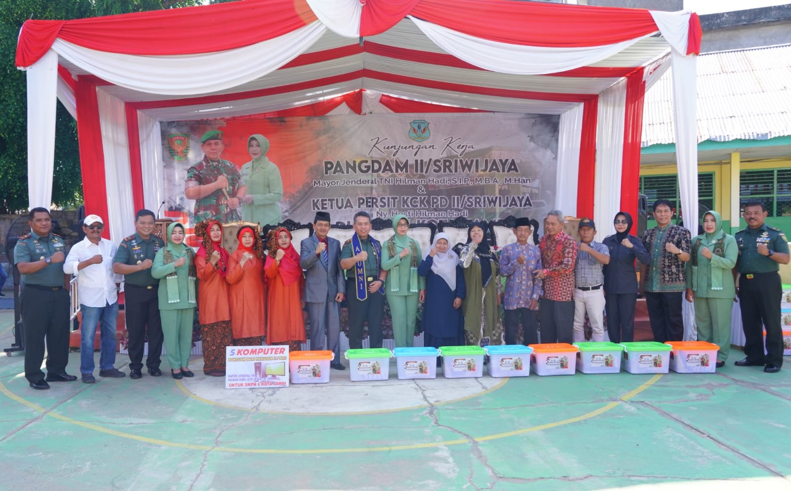 Selain itu, Pangdam juga memberikan bantuan 5 unit komputer untuk membantu operasional pendidikan di setiap sekolah serta menyerahkan plakat kepada kepala sekolah.