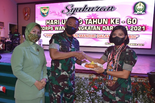 NASIONALXPOS.CO.ID, PALEMBANG – Pangdam II/Sriwijaya Mayjen TNI Agus Suhardi, menghadiri perayaan puncak Hari Ulang Tahun (HUT) ke-60 Korps Wanita Angkatan Darat (Kowad) Tahun 2021, di Gedung Sudirman Makodam II/Sriwijaya Jalan Jendral Sudirman KM 3.5, Kota Palembang, Senin (27/12/2021).