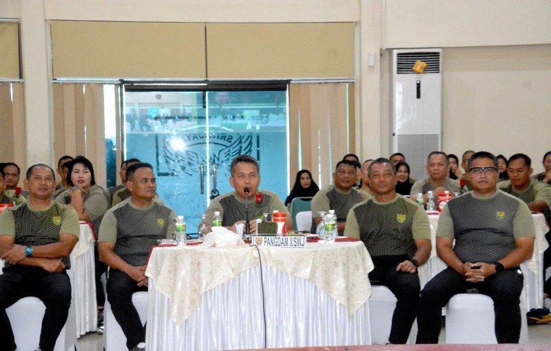 NASIONALXPOS.CO.ID, PALEMBANG – Panglima Kodam II/Sriwijaya, Mayjen TNI Hilman Hadi, S.I.P., M.B.A., M.Han., mengikuti Video Conference (Vicon) dalam rangka Grand Launching Super Aplikasi Elektronik Tabungan Wajib Perumahan TNI AD (APP ETWP – AD) dan Penyerahan secara simbolis Seragam PNS TNI AD oleh Kepala Staf Angkatan Darat (Kasad) Jenderal TNI Dr. Dudung Abdurachman, di Gedung Sudirman Makodam II/Swj Palembang, Selasa (21/02/2023).