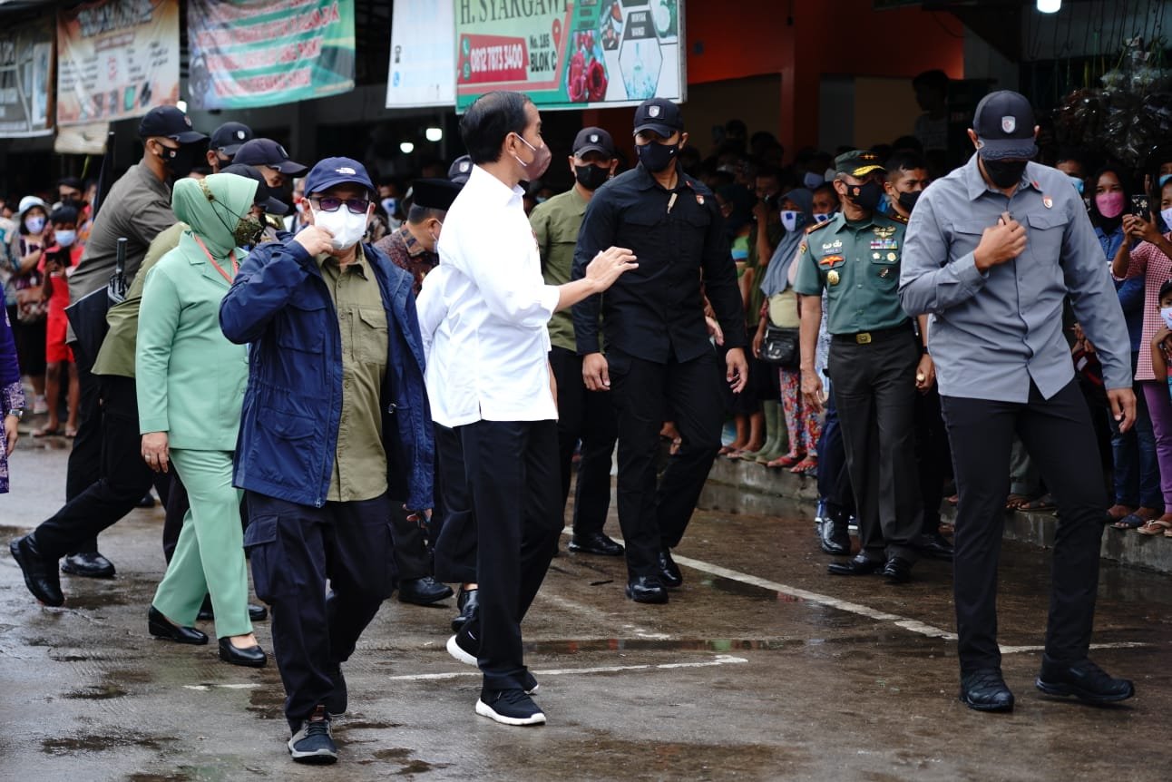 Tidak menunggu lama, Presiden RI Joko Widodo dan rombongan langsung berangkat menuju Pasar Angso Duo untuk meninjau dan menyerahkan sejumlah Bantuan Langsung Tunai atau BLT Minyak Goreng kepada masyarakat penerima manfaat.