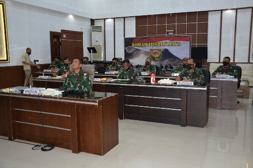 Rakor tersebut, dilaksanakan melalui Video Conference (Vidcon), yang dipimpin langsung oleh Kasad Jenderal TNI Andika Perkasa dari Mabesad. Rapat kali ini, diikuti juga oleh seluruh Kotama dan dan Balakpus jajaran TNI AD.