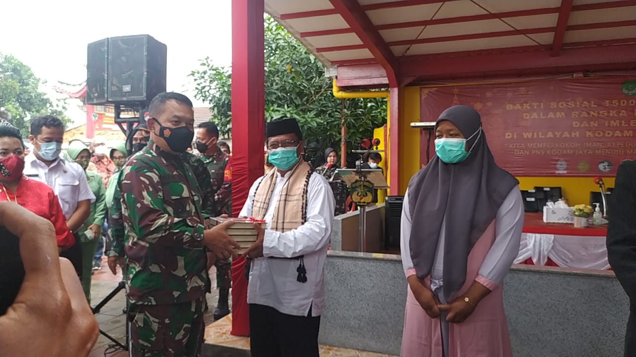 NASIONALXPOS.CO.ID, TANGERANG- Menjelang perayaan Imlek 2021 Pangdam Jaya/Jayakarta Mayjen TNI Dudung Abdurachman dan Danrem 052/Wkr Brigjen TNI Purwito Hadi Wardhono di dampingi Wali Kota Tangerang Arief R Wismasyah, Ketua Panitia Letkol Inf Bangun I E Siregar Dandim 0510/Trs melakukan kegiatan Bansos dan peresmian pemugaran vihara Yan So Bio Neglasari yang di gelar di Vihara Yang Seng Bio Rawa Kucing Kelurahan Mekarsari Kecamatan Neglasari Kota Tangerang, Rabu (10/02/2021).