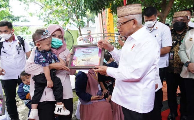 Selain itu Ma’ruf Amin juga menyerahkan penghargaan kepada 8 anak lulus tengkes dan meninjau kegiatan posyandu berupa penyuluhan masalah kesehatan serta pemberian imunisasi oleh kader dan petugas kesehatan Puskemas Limboto kepada 30 balita di Kelurahan Kayubulan.
