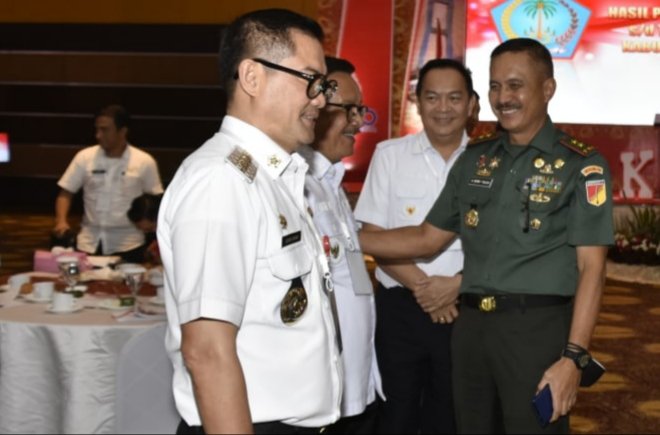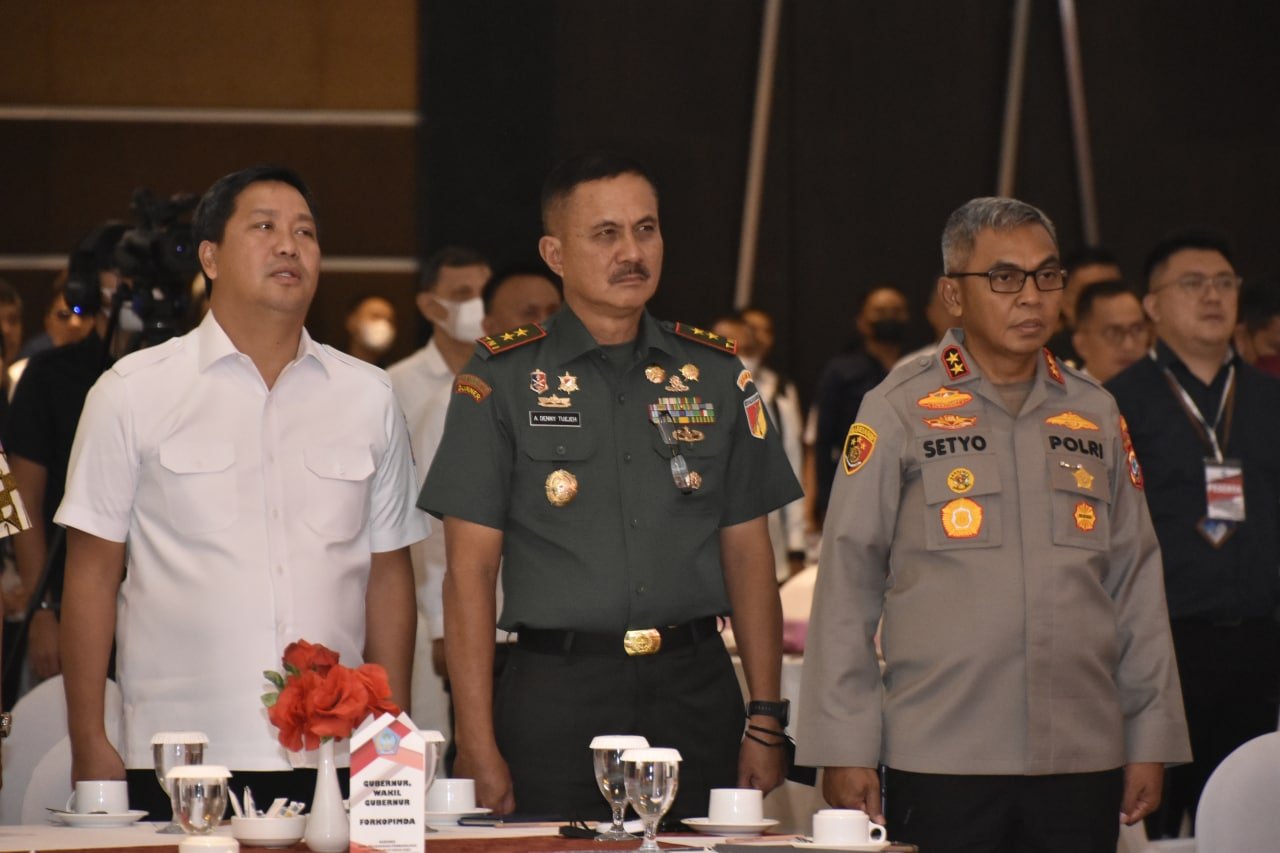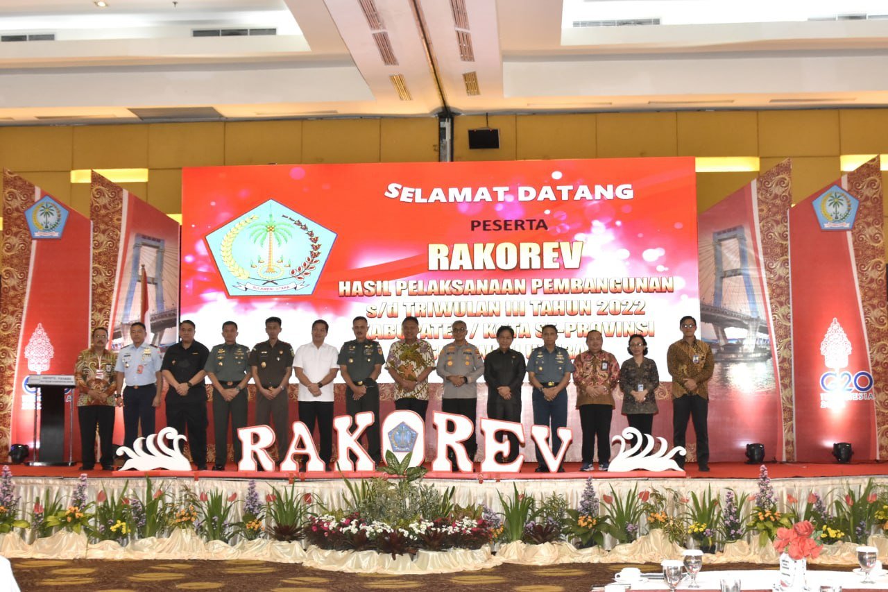 NASIONALXPOS.CO.ID.MANADO,-Dalam rangka mencapai target pembangunan, Pangdam XIII/Merdeka Mayjen TNI Denny Tuejeh beserta Unsur Forkopimda Provinsi Sulut menghadiri Rapat Koordinasi dan Evaluasi (Rakorev) hasil pelaksanaan pembangunan sampai dengan Triwulan III Tahun 2022 Kabupaten/Kota se-Provinsi Sulut yang bertempat Grand Kawanua CC, Manado Rabu (16/11/2022)