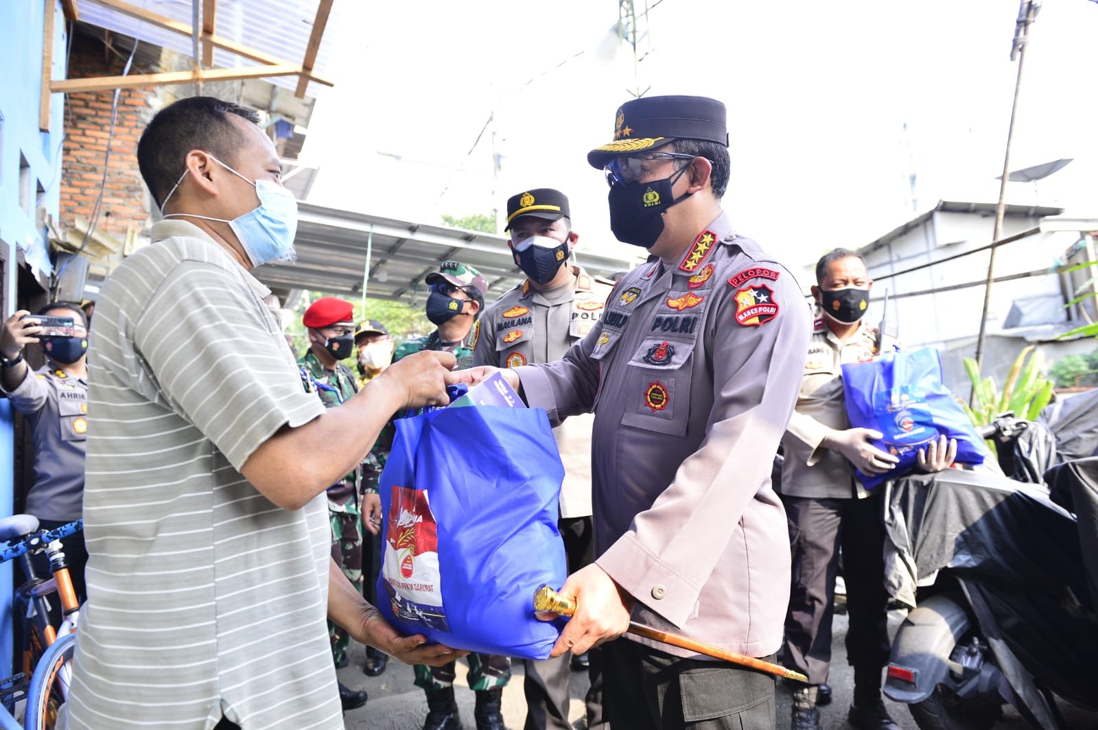 Panglima TNI dan Kapolri Turun ke Pemukiman Serahkan Bansos PPKM Level 4