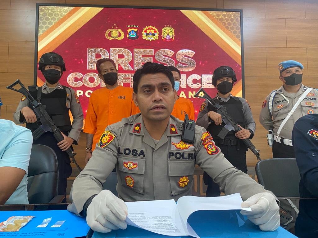 Polres Jembrana kembali berhasil mengungkap kasus penyalahgunaan narkotika jenis sabu dengan tersangka berinisial IBKAM alias Gus Gobler (43) dan IBKPW (35) yang keduanya berasal dari Banjar Anyar, Desa Batuagung, Kecamatan/Kabupaten Jembrana. Hal tersebut diungkap saat Wakapolres Jembrana Kompol. Losa Lusiano Araujo, menggelar press release di Aula Polres Jembrana, Sabtu (15/10/2022) pagi.