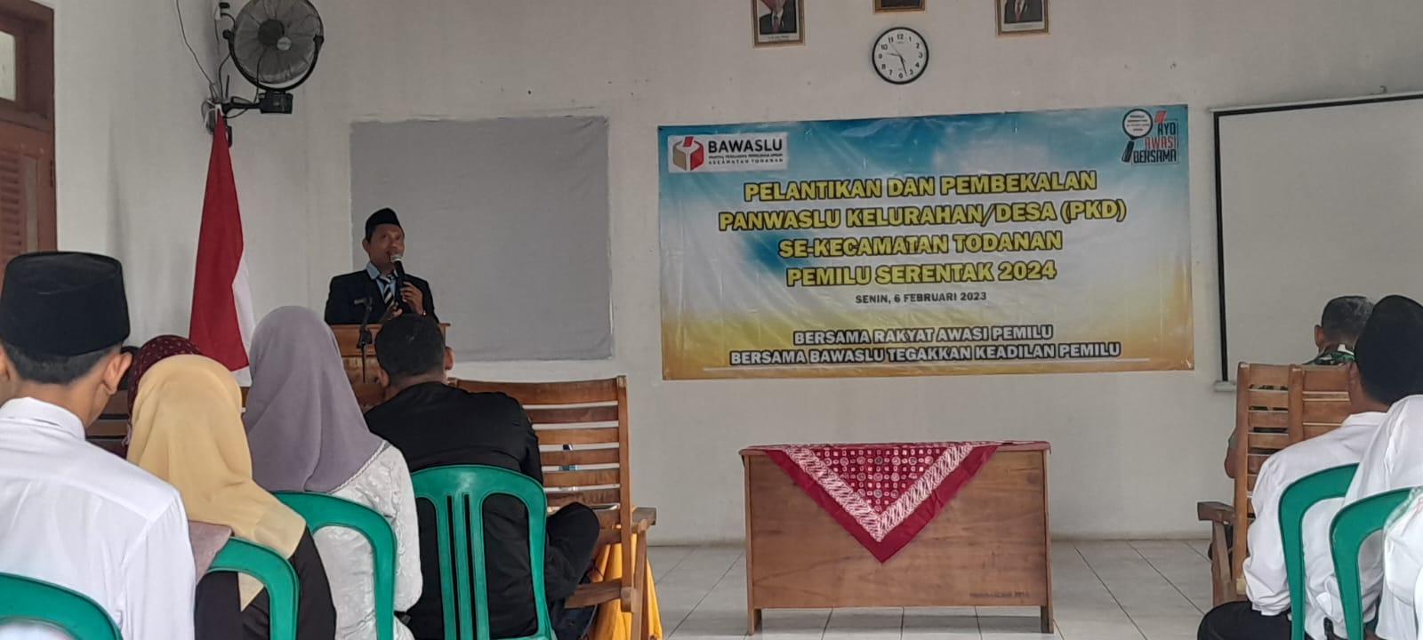 Pelantikan ini dilakukan oleh Ketua Pengawas Pemilihan Umum (Panwaslu) Kecamatan Todanan Muh. Arif Ma’sum di kantor Desa Todanan, Senin (06/02/2023).