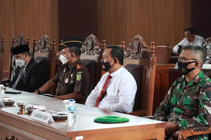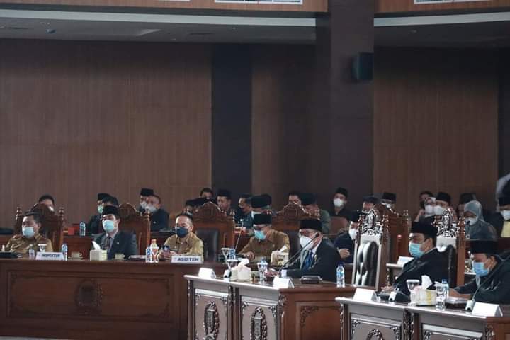 NASIONALXPOS.CO.ID, LUBUKLINGGAU – Walikota Lubuklinggau, H SN Prana Putra Sohe, Wakil Walikota H Sulaiman Kohar bersama para pejabat dijajaran Pemkot Lubuklinggau menghadiri rapat paripurna DPRD Kota Lubuklinggau dengan agenda penyampaian rekomendasi DPRD terhadap Laporan Keterangan Pertanggung Jawaban (LKPJ) Wali Kota Lubuklinggau 2020 Senin, (17/05/2021).