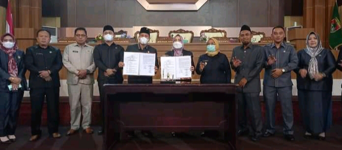 Diakhir Paripurna, dilanjutkan penandatanganan Nota Kesepakatan KUA dan PPAS Perubahan Tahun Anggaran 2021 oleh Bupati Mura dan Ketua DPRD Mura.