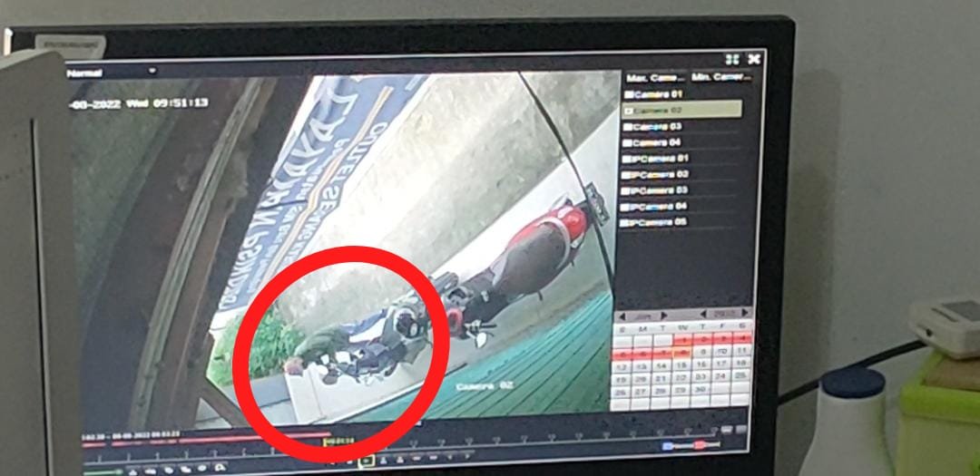 Aksinya terlihat di monitor CCTV dalam, korban berteriak dan salah seorang warga dibantu korban dan rekannya berusaha mengejar namun gagal, pelaku langsung tancap gas meninggalkan lokasi targetnya.