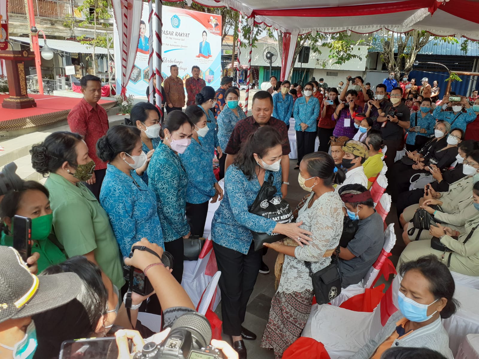 Ny. Surya Adnyani Mahayastra berharap produk-produk yang dijual dalam pelaksanaan pasar rakyat dapat memenuhi kebutuhan masyarakat pada saat hari raya sehingga para UMKM/IKM bangkit kembali dari kondisi pasca pandemi yang mengalami masalah dalam pemasaran.