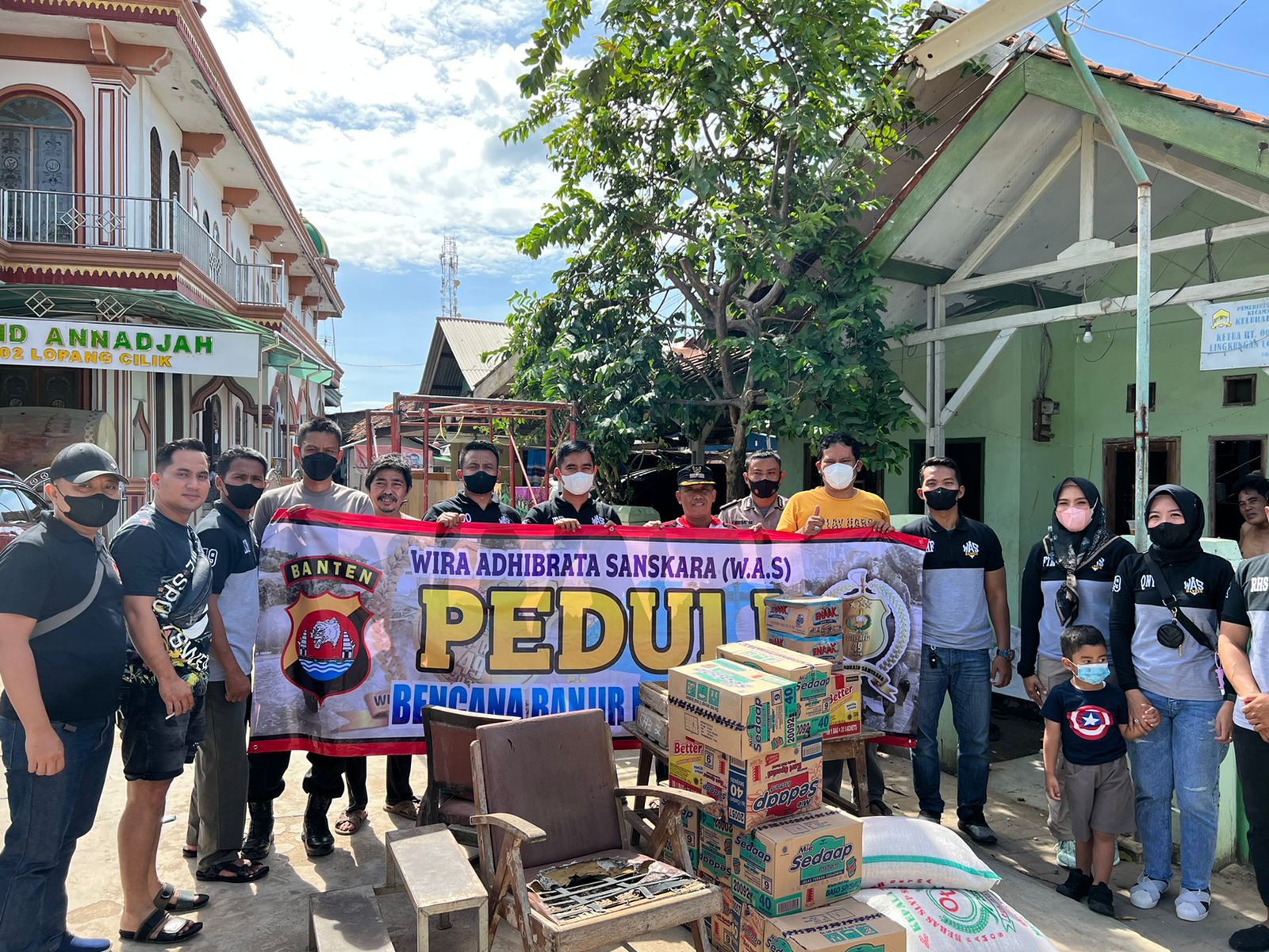 “Saya bersama dengan teman-teman alumni SIP tahun 2020 resimen Wira Adhibrata sanskara (WAS) menyalurkan bantuan di kelurahan Kebon Sayur dan Lopang Cilik warga yang terdampak banjir ” kata IPDA Irwan.