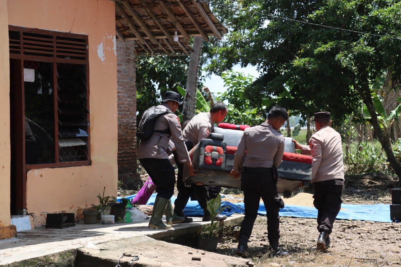 “anggota Polres Lampung Selatan kami terjunkan untuk membantu membersihkan ratusan rumah warga seluruh perobatan rumah tangga yang basah karena terendam air selama 3 hari termasuk kasur pakaian dan meja kursi. Polisi juga berusaha memisahkan barang – barang yang masih dapat digunakan oleh warga namun peralatan elektronik, bahan makanan dan berkas penting telah rusak” jelasnya.