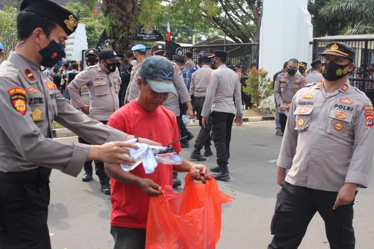 Unjuk rasa yang di lakukan mahasiswa di KP3B mengakibatkan sampah yang berserakan dilokasi, sehingga Kabid Humas berserta personel Polda Banten berinisiatif membersihkan sampah yang berserakan di lokasi unjuk rasa.