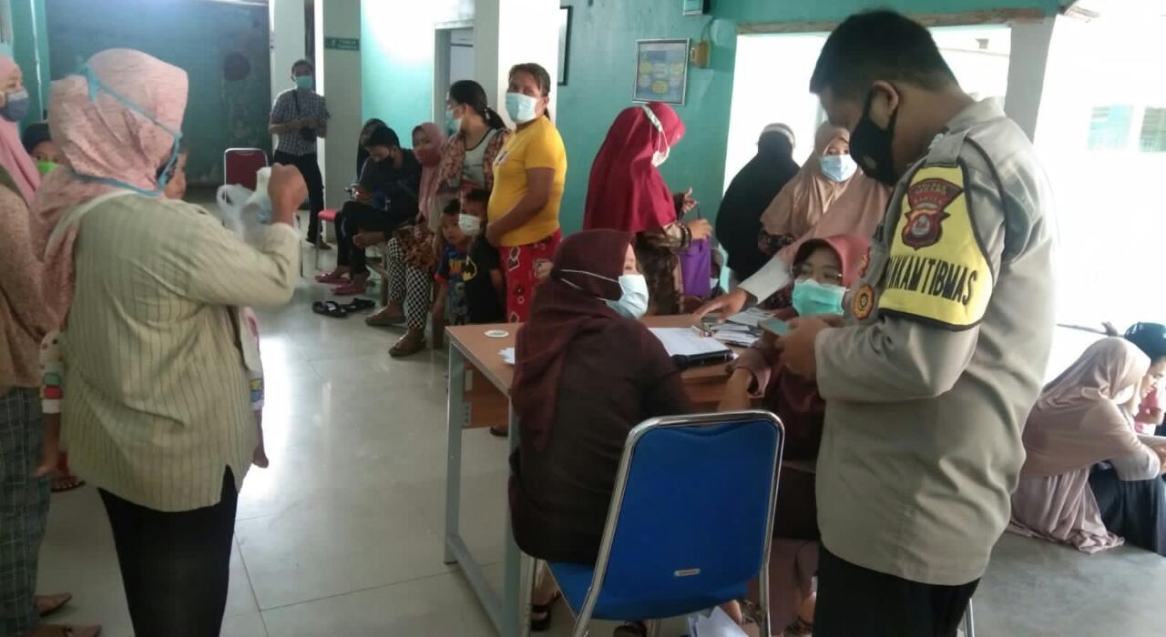 Pastikan Prokes, Bhabinkamtibmas Polsek Jawilan Pantau Kegiatan Vaksinasi Ibu Hamil di Puskesmas
