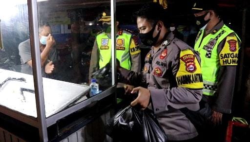 Patroli yang dilaksanakan mengusung semangat humanis. Pada pedagang yang masih membuka usahanya di atas jam operasional yakni jam 20.00 WIB diimbau secara persuasif untuk tutup. Tidak hanya itu, para pedagang juga kemudian diberi bantuan sosial berupa beras sebanyak 5 kilogram, Minyak 2 liter, Mie instan sebanyak 5 bungkus, Tepung 1 kilogram dan Masker yang dikemas menjadi sepaket.