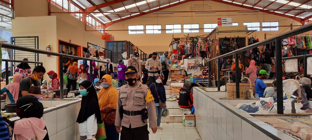 Untuk itu, Polsek Banjarejo Polres Blora intensif menggelar patroli imbauan protokol kesehatan. Satu regu patroli Polsek Banjarejo yang dipimpin oleh Kapolsek Iptu Sumaryono,SH,MH menyambangi pasar tradisional Kecamatan Banjarejo.