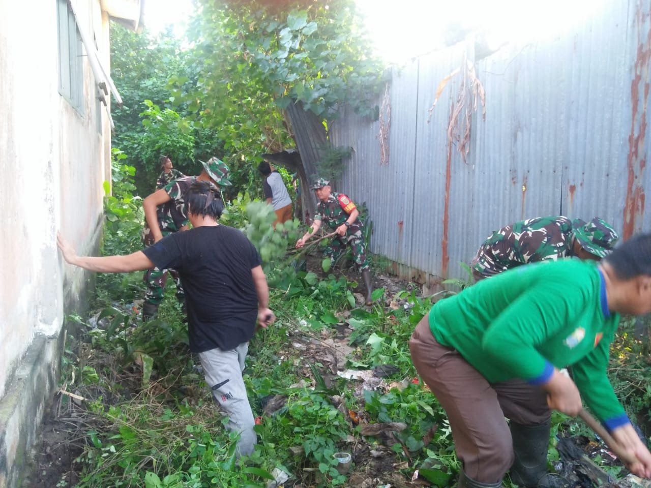 “Adapun tujuan kegiatan gotong royong ini adalah untuk menciptakan lingkungan disekitar pemukiman warga bersih, sehat dan asri,” kata Serka Martin.