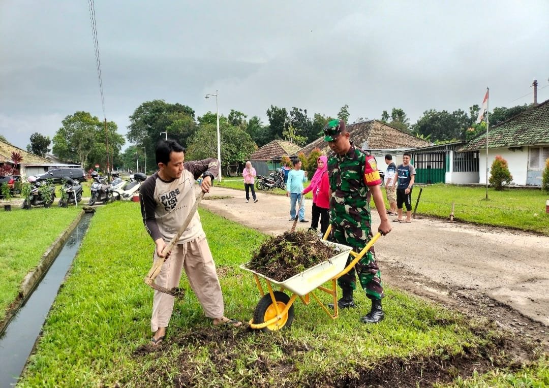 Peduli Kebersihan, Serka Haryono Bantu Bersihkan Lingkungan di Sekitar Pemukiman Warga
