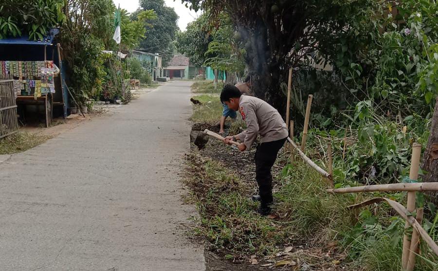 NASIONALXPOS.CO.ID, SERANG – Bhabinkamtibmas Desa Junti Polsek Jawilan Polres Serang Bripka Sigit bersama warga melaksanakan kerja bakti di Desa Junti, Kecamatan Jawilan, Kabupaten Serang, Minggu (3/9/2023).
