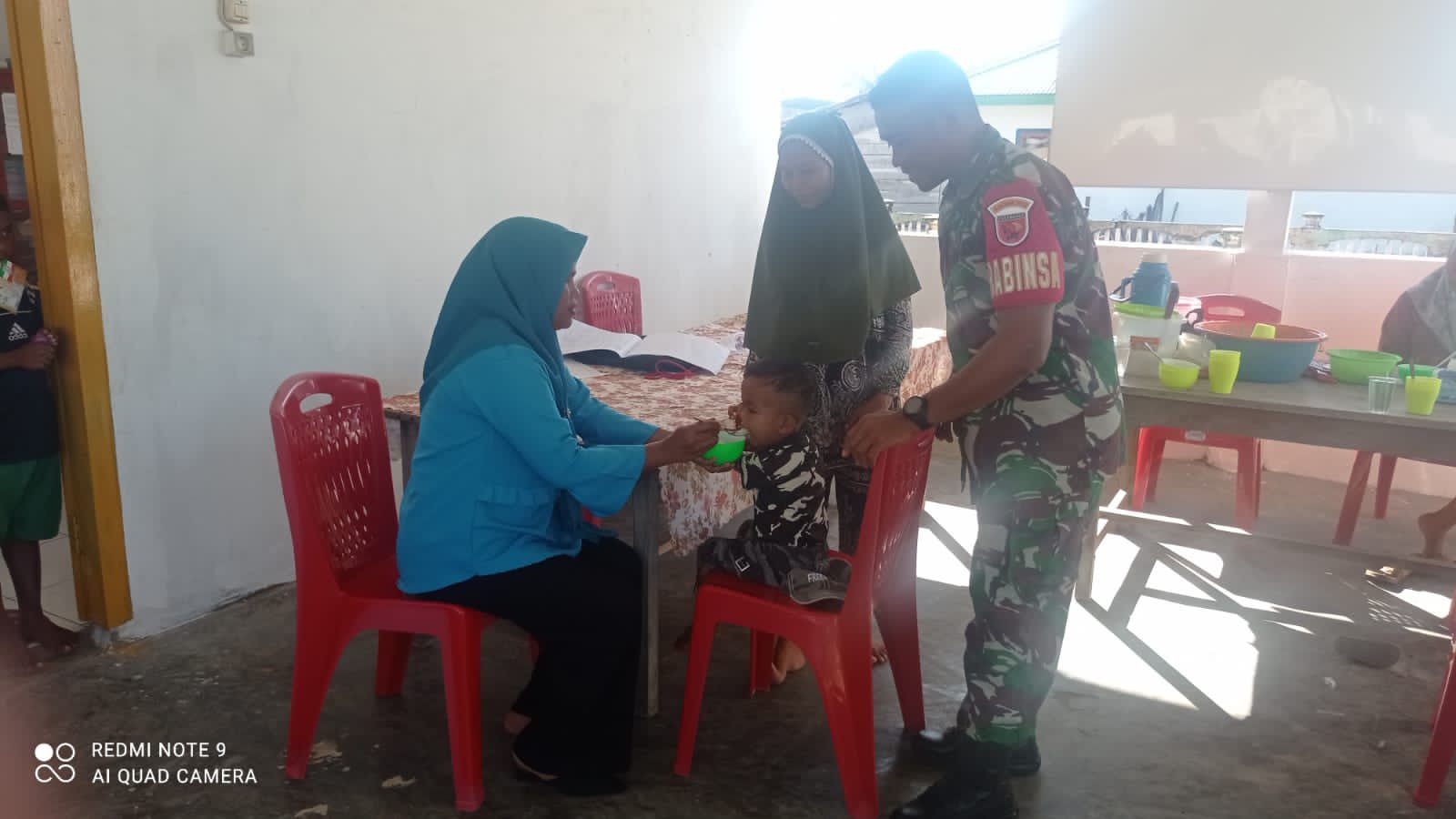 NASIONALXPOS.CO.ID,HALTENG – Babinsa Koramil 1512-03/Gebe, Makodim 1512/Weda Serda Fahri A. Rahman melaksanakan pendampingan pemberian asupan makanan bergizi atau makanan tambahan kepada anak, bertempat di Kantor desa Umera Kecamatan Pulau Gebe, Kabupaten Halmahera Tengah Selasa (04/08/2023).