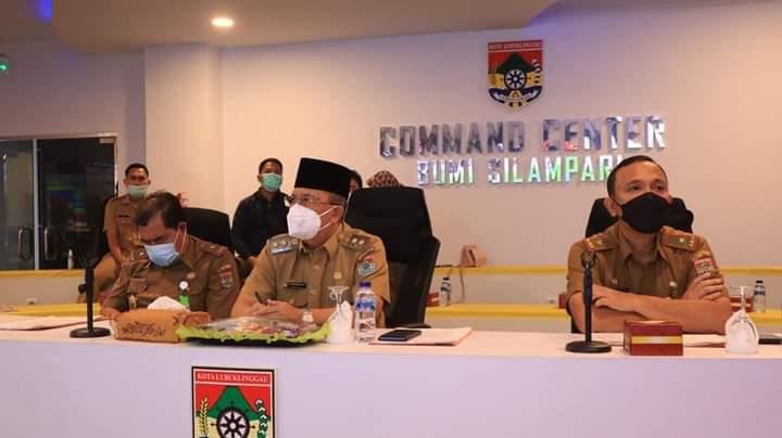 NASIONALXPOS.CO.ID LUBUKLINGGAU – Wakil Wali Kota Lubuklinggau, H Sulaiman Kohar didampingi Inspektur, Badarudin dan Kepala Dinas Kominfo Erwin Armeidi mengikuti rapat koordinasi (Rakor) terintegritas dengan KPK Tahun 2021 bersama seluruh Kepala Daerah se-Sumsel via zoom meeting di ruang Command Center Kota Lubuklinggau, Selasa (16/02/2021).