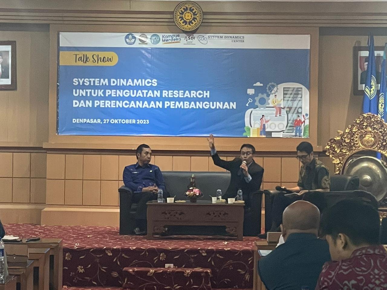 “Hal ini sangat luar biasa Bappeda Bali ikut membidani MPKB kami menghaturkan terima kasih yang sebesar-sebesar.” ucap Prof. Ngakan Suardana saat membuka talkshow dengan topik “Sistem Dinamics untuk Penguatan Research dan Perencanaan Pembangunan” di Gedung Pasca Sarjana Unud, Denpasar. Jumat (27/10/2023).