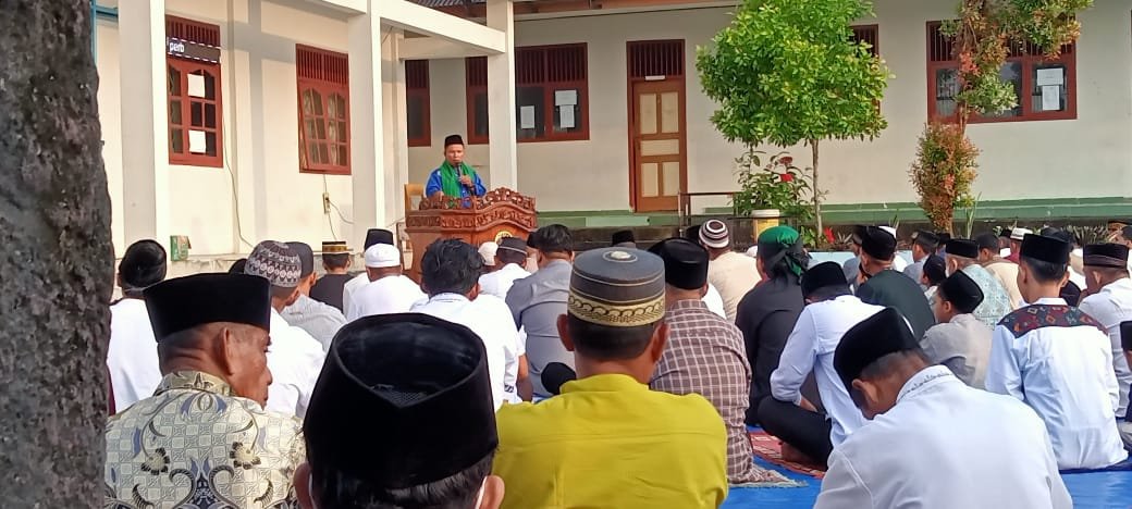 Khotib, Ustad Alfatoni menyampaikan orang-orang yang tidak menghormati orang tua dengan baik, kelompok menjadi dua bagian, pertama adalah orang-orang yang tidak mengindahkan agama dan perintah Allah, dan tidak percaya dengan perintah Allah Quran, kami mengajak kepada seluruh jama’ah untuk mensyukuri nikmat yang di berikan seperti menjalankan puasa satu bulan penuh, dan semoga kita meninggalkan dunia ini dengan khusnul khotimah, amiiin ya robal alamiin, jelasnya