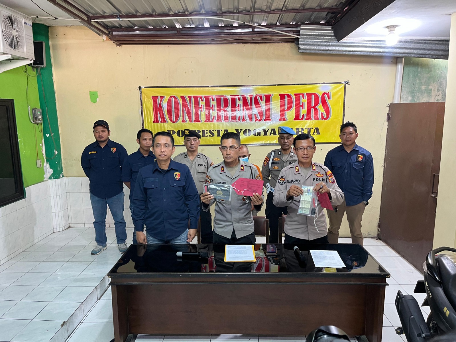 Kapolsek Gondomanan Kompol Suwardi didampingi Panit Reskrim Ipda Agung Sundoro saat paparannya menyampaikan bahwa korban mengalami kehilangan satu unit sepeda motor, yang terjadi di Jalan Kauman 37, Ngupasan, Gondomanan, Yogyakarta.