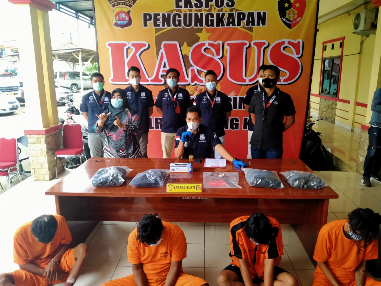“Empat pelaku melarikan diri ke Lampung, bersembunyi di rumah teman salah satu tersangka. AF, WH, HM, saat ditangkap melawan dan berupaya melarikan diri. Sehingga kami lakukan tindakan tegas terukur,” kata Kapolres Serang Kota AKBP Yunus Hadith Pranoto, S.IK., M.Si., melalui Kasatreskrim Polres Serang Kota AKP Mochammad Nandar, S.IK saat press conference di Mapolres Serang Kota, Rabu (24/03/2021).