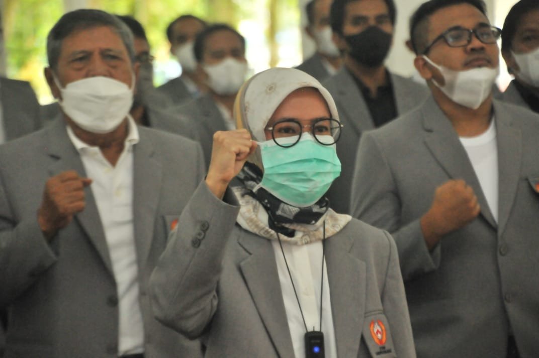 NASIONALXPOS.CO.ID, LEBAK – Bupati Lebak Iti Octavia Jayabaya bersama Perwakilan Forum Koordinasi Pimpinan Daerah (Forkopimda) Kabupaten Lebak menghadiri acara Pelantikan dan Pengukuhan Pengurus Komite olahraga Nasional Indonesia (KONI) Kabupaten Lebak Masa Bakti 2020-2024, sekaligus pelepasan atlet asal Kabupaten Lebak Ke Pekan Olahraga Nasional (PON) XX Papua 2021. Bertempat di Pendopo Kabupaten Lebak, Selasa (14/09/2021).