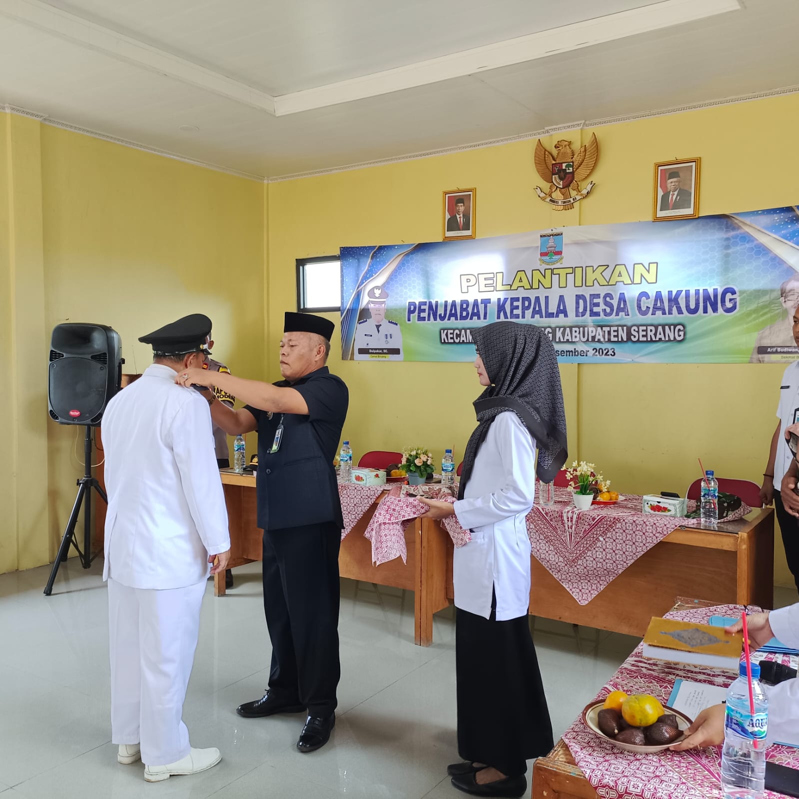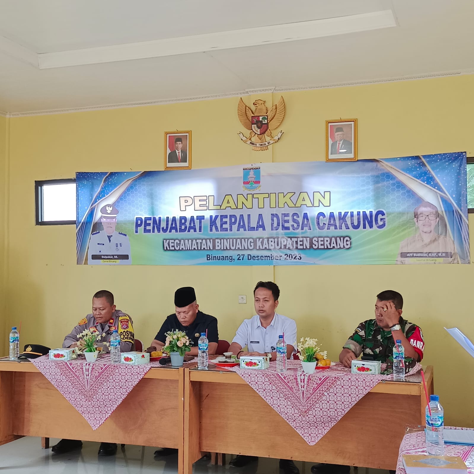 NASIONALXPOS.CO.ID. SERANG – Pelantikan sekaligus pengambilan janji Kepala Desa Cakung di lakukan di Aula Kantor Kecamatan Binuang berjalan dengan lancar dan hikmah, Rabu (27/12/2023).