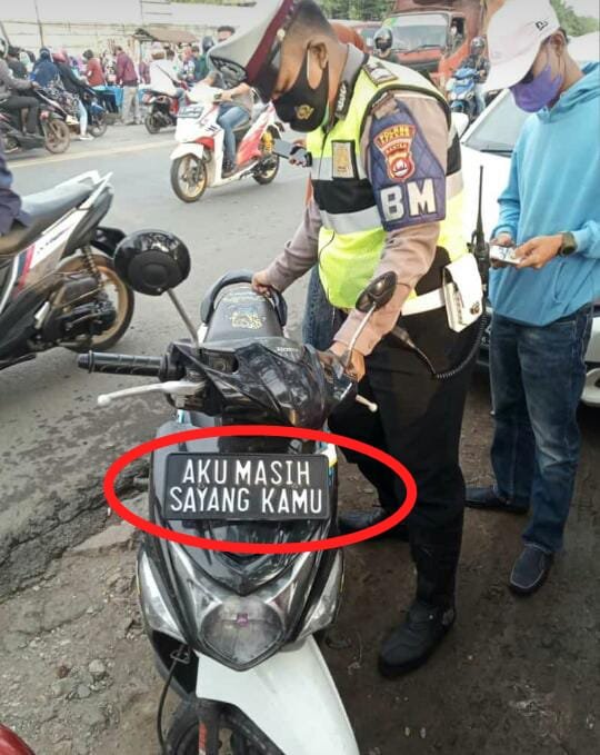 “Benar bahwa anggota kami Bripka Deny Susanto saat melaksanakan Gatur lalulintas di pagi hari sekira pukul 06.40 Wib, di jalan raya cikande tepatnya di depan PT. PWI telah mengamankan kendaraan beat, dimana anggota melihat pelat nomor pada kendaraan tersebut tidak semestinya, pada pelat nomor bertulis ” AKU MASIH SAYANG KAMU” ujar Hairus.