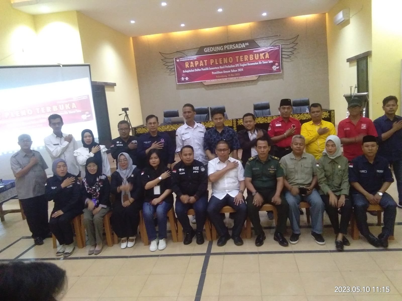 NASIONALXPOS.CO.ID, PALEMBANG – Danramil 418-06/Kamboja Kapten Inf Syafrullah, diwakili Bati Tuud Peltu Ahmad Sofian, menghadiri kegiatan Rapat Pleno Terbuka, Rabu (10/5/2023).