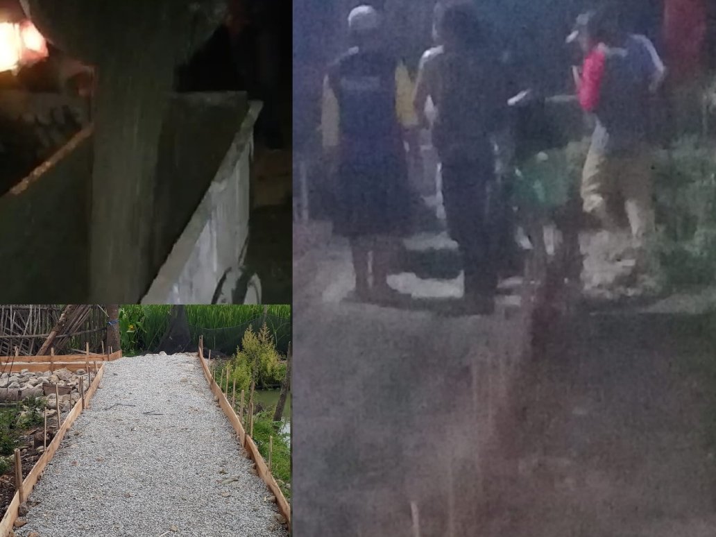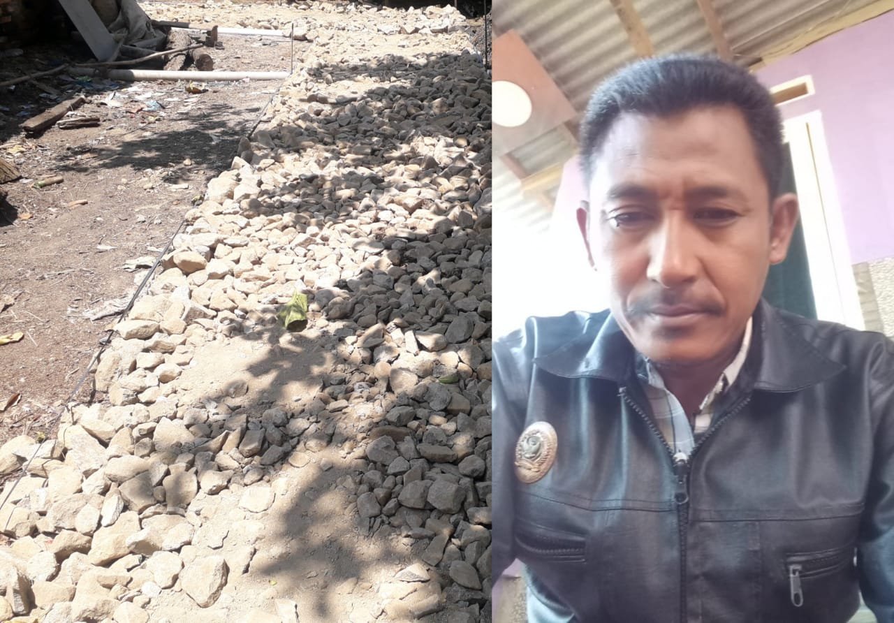 Pasalnya Pondasi bawah menggunakan batu makadam, bukan memakai sirtu, Lapisan atas memakai batu secrining/abu batu, bukan Bescose dan papan bikisting keadaan terpendam sehingga beton jauh dari Volume pekerjaan.