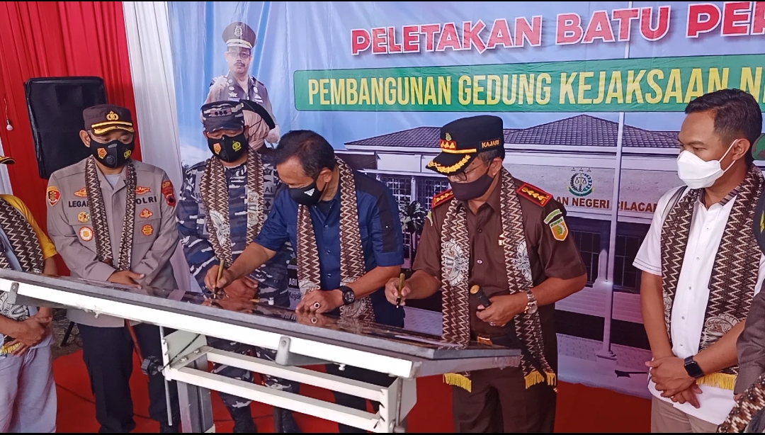 NASIONALXPOS.CO.ID, CILACAP- Diawali dengan peletakan batu pertama oleh Bupati Cilacap Tatto Suwarto Pamuji, Wakil Bupati Syamsul Auliya Rachman, yang dilanjutkan oleh Kajari Cilacap, Danlanal, Dandim, Kapolres, mengawali proyek pembangunan kantor Kejaksaan Negeri Cilacap yang terletak di Jln. Tentara Pelajar Cilacap Utara, Jumat (18/6/2021).