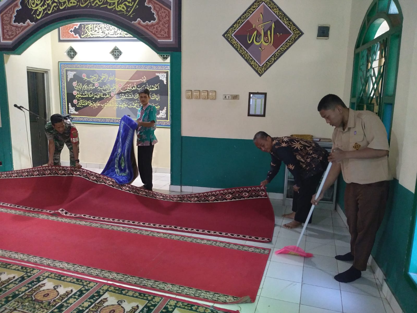 Dalam kegiatan tersebut, Serda Jauhari bersama Koptu Jhoni Candra dan Peltu Kms Andi, melaksanakan pembersihan pos kamling bersama warga, anjangsana di SMK Negeri 2 PGRI Palembang dan melakukan pembersihan prasarana Mushola Nurul Iman.
