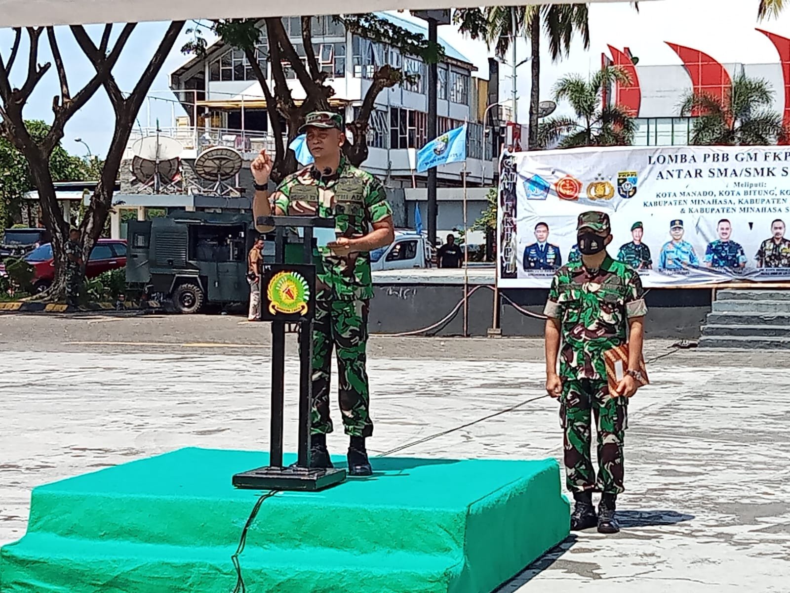 Kasrem 131/Santiago Kolonel Inf Hengki Yudha Setiawan mewakili Danrem dalam Pembukaan Lomba PBB se Sulut Bertempat di lapangan Basket Kawasan Megamas Manado, Senin (7/11/22)