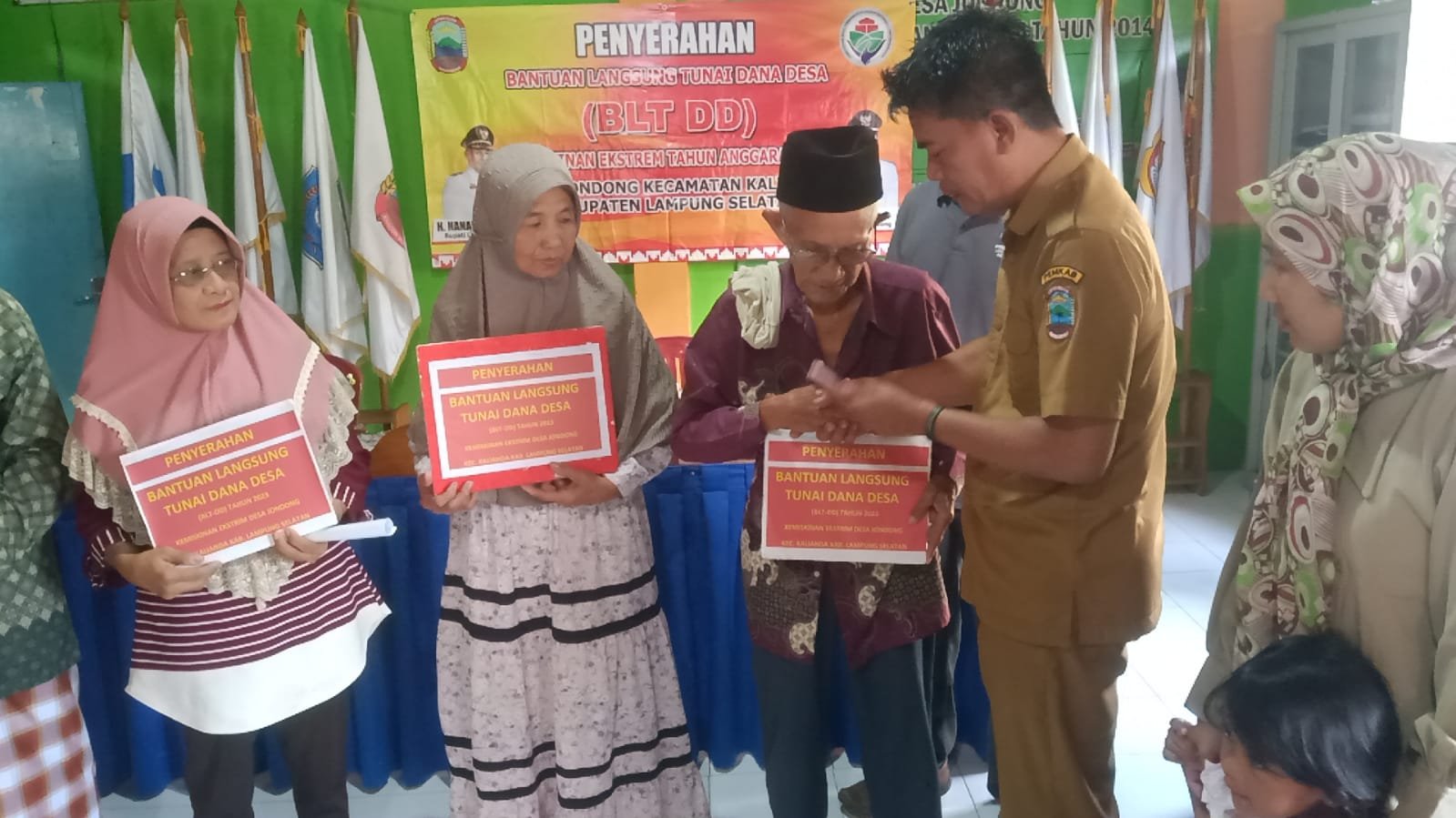 NASIONALXPOS.CO.ID, LAMSEL – Pemdes jondong  menyalurkan  (BLT-DD) Bantuan Langsung Tunai Dana Desa. Ekstrim Triwulan II Tahun Anggaran 2023 sebanyak 21 KPM yang dilaksanakan di aula Kantor Desa Jondong Kecamatan Kalianda, Kabupaten Lampung Selatan, Senin (29/05/2023).