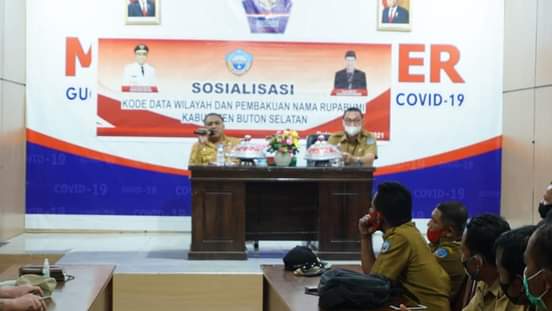 NASIONALXPOS.CO.ID, BUSEL/SULTRA -Bupati Buton Selatan, H. La Ode Arusani hadir langsung memberikan sambutan sekaligus memberikan penguatan, bertempat di aula kantor Sekretariat Daerah Kabupaten Buton Selatan, diselenggarakan rapat Sosialisasi Kode Data Wilayah dan Pembakuan Nama Rupabumi, Selasa (27/7/2021).