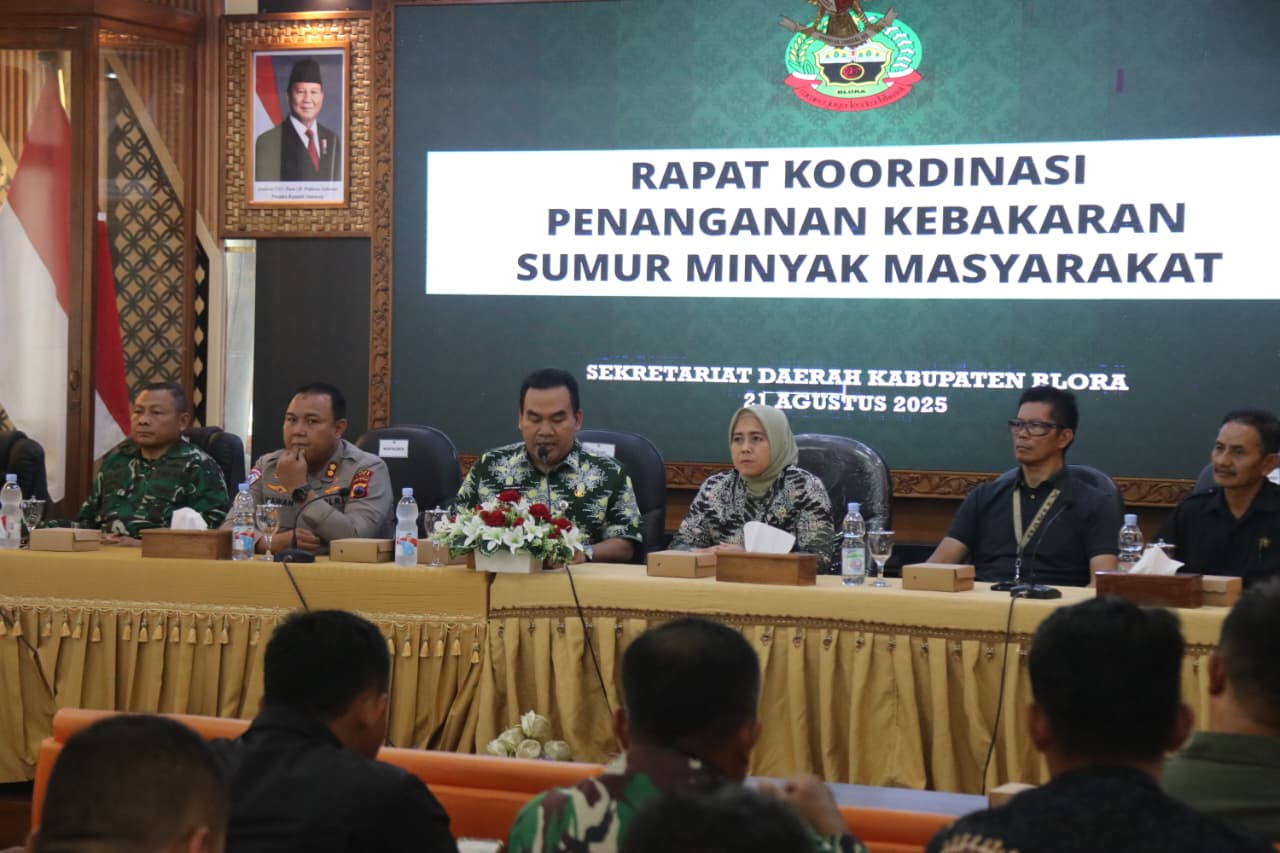 NASIONALXPOS.CO.ID, BLORA – Pemerintah Kabupaten (Pemkab) Blora bersama Forum Komunikasi Pimpinan Daerah (Forkopimda) menggelar rapat koordinasi (rakor) penanganan kebakaran sumur minyak ilegal yang terjadi di Dukuh Gendono, Desa Gandu, Kecamatan Bogorejo, Kamis (21/8/2025).