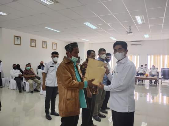 NASIONALXPOS.CO.ID, BUTON/SULTRA -Bupati Buton, Drs. La Bakry, MSi menyerahkan bantuan pembangunan masjid yang tersebar di wilayah Kabupaten Buton. Bantuan berupa uang tunai sebesar Rp 926 juta tersebut diserahkan langsung pada panitia pembangunan masjid masing-masing penerima bantuan.