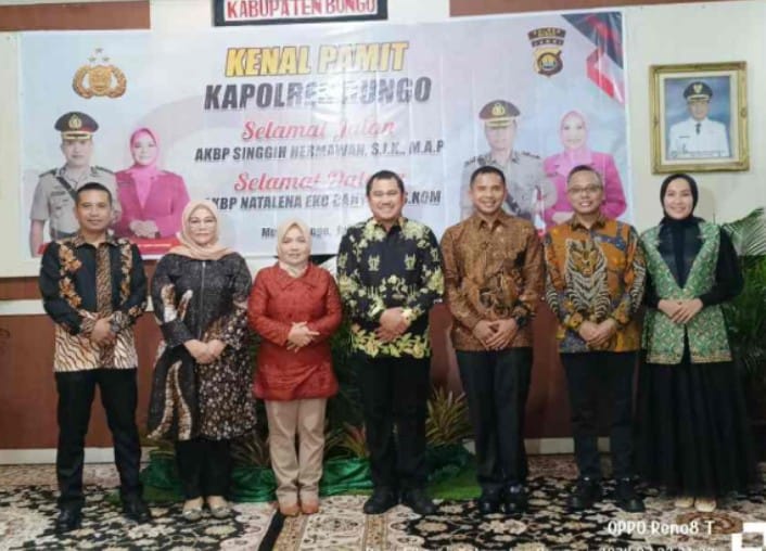 “Terima kasih atas dukungan Bupati Bungo, jajaran Forkopimda dan Pemerintah Daerah, jajaran TNI dan seluruh masyarakat Bungo atas kerja sama baik yang telah terjalin selama ini. Saya minta maaf jika ada perbuatan atau perkataan saya yang kurang berkenan. Saya terharu karena suasana kekeluargaan di Bungo ini sangat luar biasa,” ungkap AKBP Singgih Hermawan,S.IK,MAP.