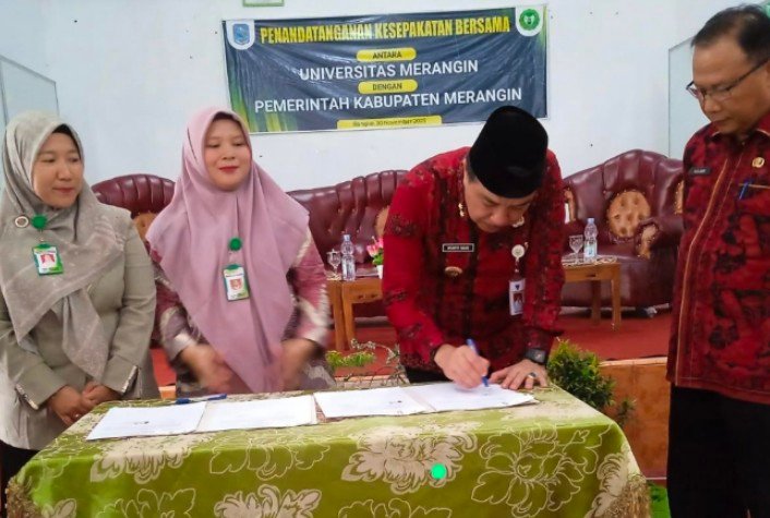 Penandatanganan MoU antara Pj bupati dengan rektor Universitas Merangin tersebut, berlangsung di Aula Kampus Universitas Merangin di Jalan Sudirman Km 2 Kota Bangko, Kamis (30/11).