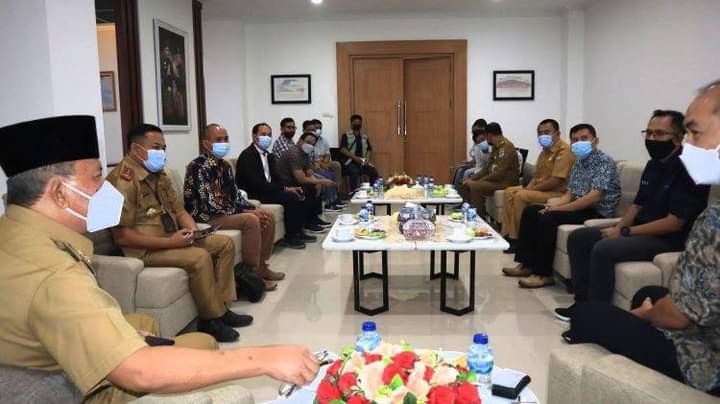 NASIONALXPOS.CO.ID, LUBUKLINGGAU – Wakil Wali Kota Lubuklinggau H Sulaiman Kohar didampingi Asisten ll Bidang Ekonomi Keuangan dan Pembangunan Setda Kota Lubuklinggau, Kgs. Effendi Feri dan Kadis Perkim, Trisko Defriansyah menerima audensi pimpinan PT. Sarana Multygria Finansial (SMF) Persero di ruang kerja wakil wali kota, Selasa (16/02/2021).