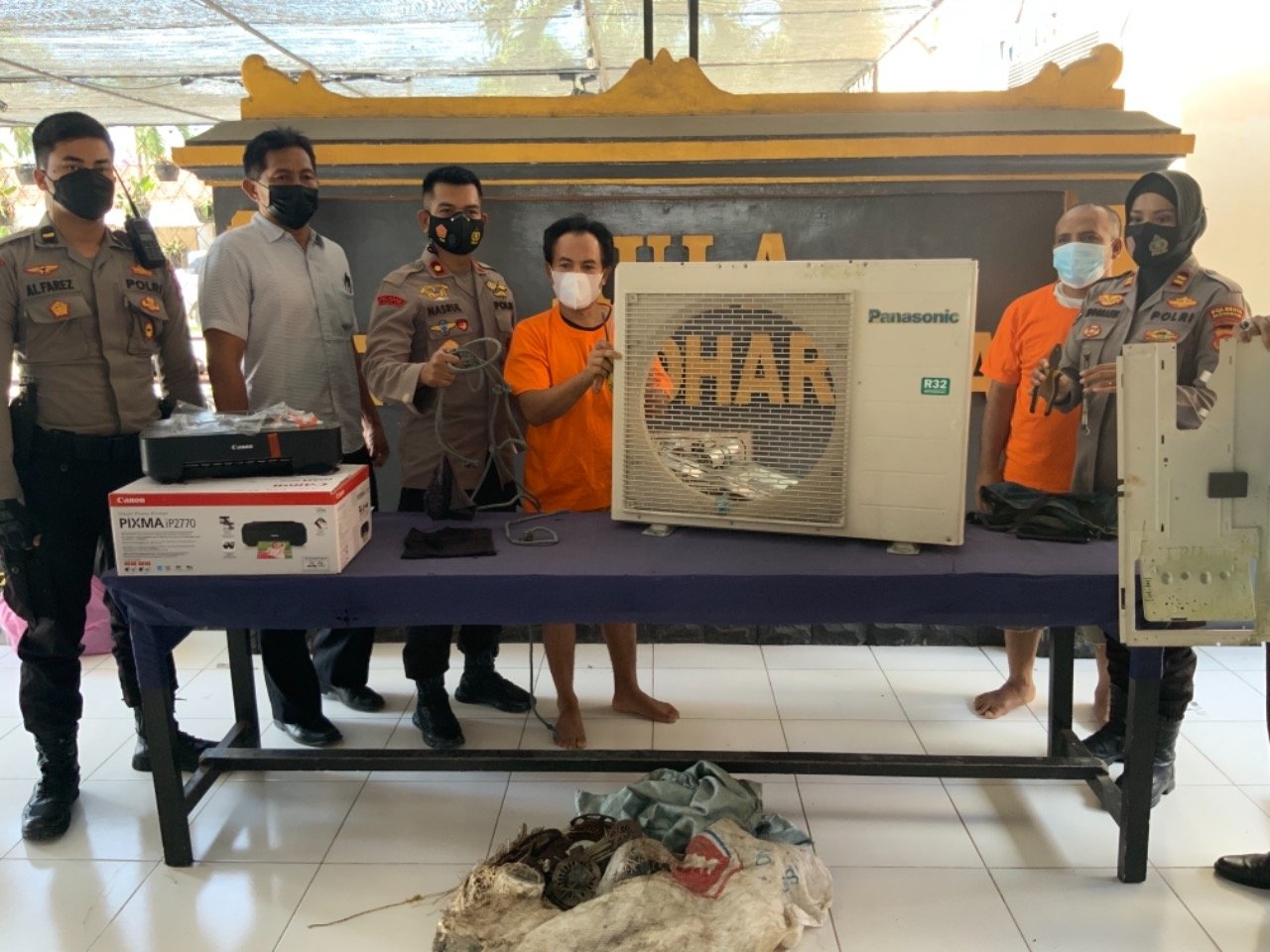 “Barang berupa AC tersebut telah dipisahkan satu persatu alat/mesinnya dan dimasukkan kedalam karung, lalu di pindahkan oleh tersangka dengan mengangkat beberapa kali ke lokasi di pinggir jalan,” ungkapnya.