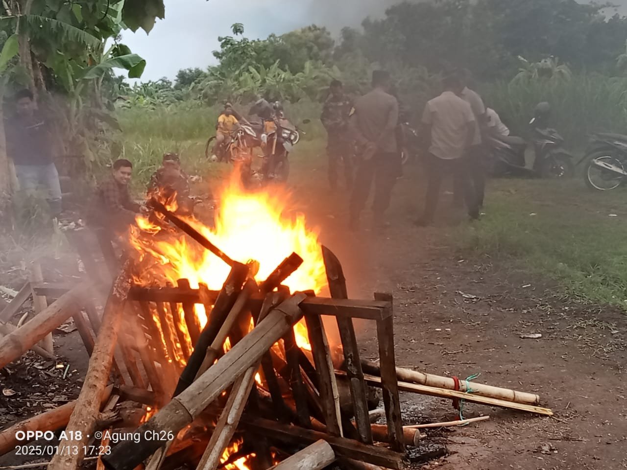 Kegiatan ini berlangsung pada sore hari dan disaksikan oleh Kanit Ditreskrimum Polda Jatim, Kompol Ardi Purboyo, serta melibatkan anggota Koramil 0815/03 Sooko, perwakilan Pemerintah Desa Kedungmaling, tokoh masyarakat, dan jajaran Polres Mojokerto, (13/1/2025).