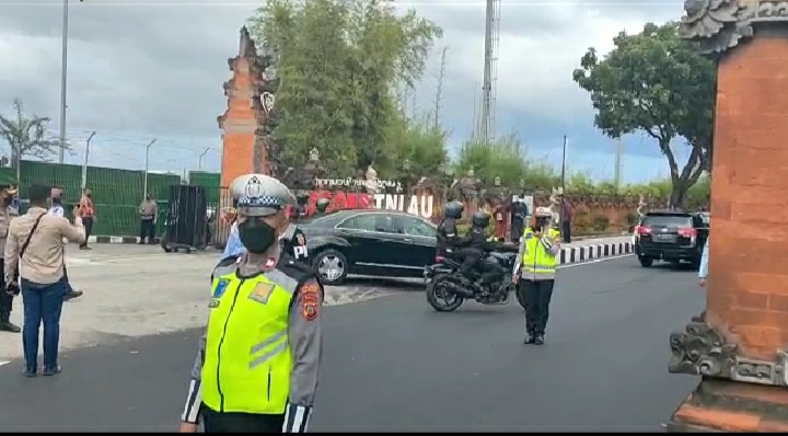 Polres Kawasan Bandara I Gusti Ngurah Rai mensiagakan personilnya yang tergabung dalam Sprin Ops Puri Agung VIII untuk melaksanakan pengamanan kedatangan Ibu Wakil Presiden RI Ny. Wury Ma’ruf Amin melalui Base Ops Lanud I Gusti Ngurah Rai. kamis, (8/9/2022).
